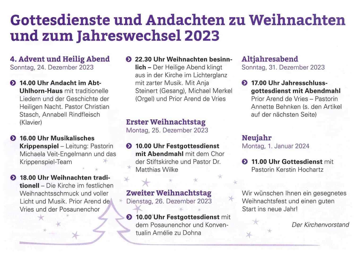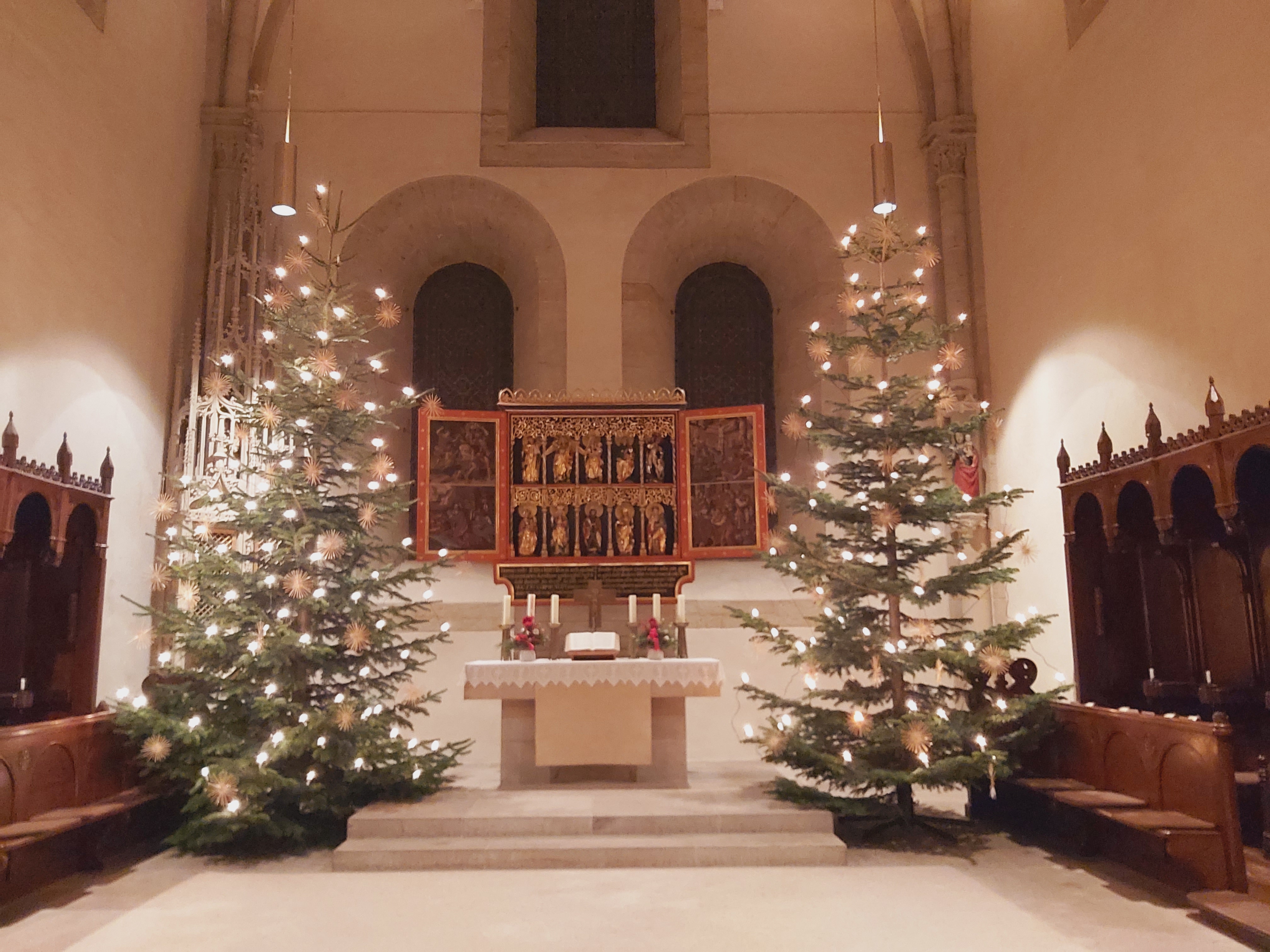 Wir laden Sie herzlich ein zu unseren nächsten Gottesdiensten. Lassen Sie sich einstimmen auf die Festtage. Genießen Sie die feierliche Atmosphäre mit den vier Adventskronen und den geschmückten Tannenbäumen.