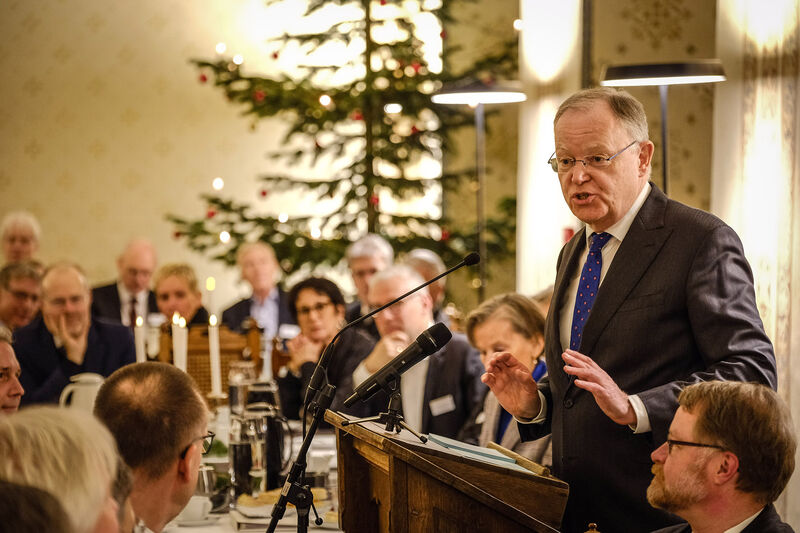 Vor rund 140 geladenen Gästen aus Politik, Wirtschaft, Kultur, Gesellschaft und Religion sagte Weil, trotz einer Vielzahl an globalen Herausforderungen dürfe der Blick für die konkreten Anliegen und Nöte der Menschen nicht verloren gehen. „Der Klimawandel etwa ist eine globale Herausforderung, aber dennoch muss ein Austausch der Heizung auch bei einem kleinen Einkommen bezahlbar bleiben.“ Umfragen zeigten, dass die Bekämpfung der Inflation, bezahlbare Wohn- und Energiekosten sowie sichere Renten für die meisten Menschen die drängendsten Themen seien.