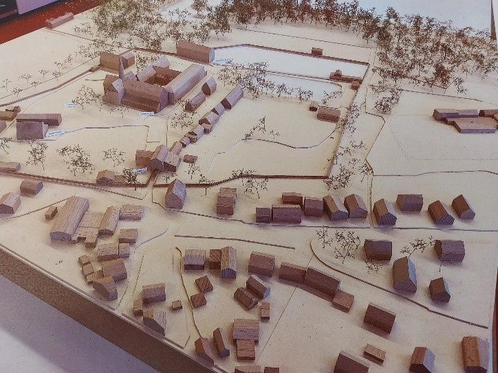 Unter der Leitung von Dr. Ing. Jens Broszeit erstellten die jungen Studierenden ihre Vorstellungen eines modernen Zentrums für Besucher*innen und ein Tagungshaus mit Restauration. „Es macht mehr Spaß, an einem echten Beispiel etwas zu entwerfen“, erklärt Dr. Broszeit. Er selbst ist von der Architektur und den Möglichkeiten auf dem Klostergelände fasziniert. Dieser Funke ist auf die Studierenden über gegangen. Mit viel Kreativität und Motivation entwickelten sie ihre ganz individuellen Entwürfe. Bevor jedoch diese entstanden, wurde zunächst ein Modell der Gebäude in und um die Klostermauern aufgestellt (siehe Foto).