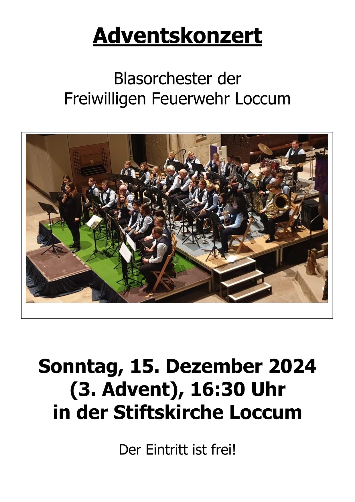 Das Blasorchester der Freiwilligen Feuerwehr lädt ein zum Adventskonzert am Sonntag, 15. Dezember 2024, um 16.30 Uhr in die Stiftskirche Loccum.